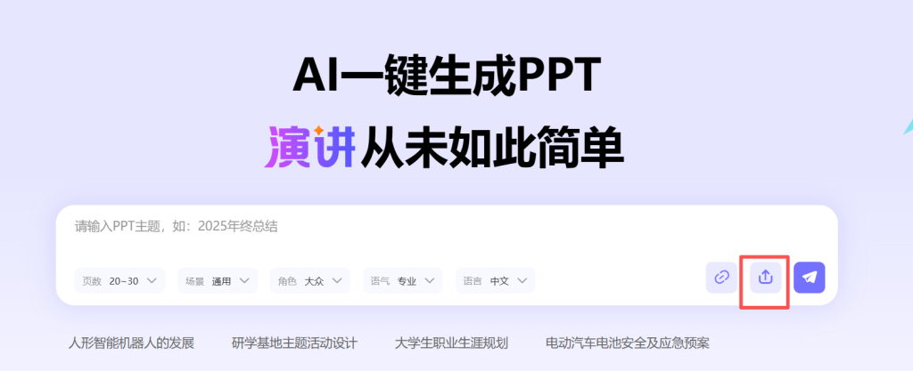 第一步:上传文档。访问7牛AI PPT平台(https://7niuai.com/),在创作界面中找到“上传文档”功能。